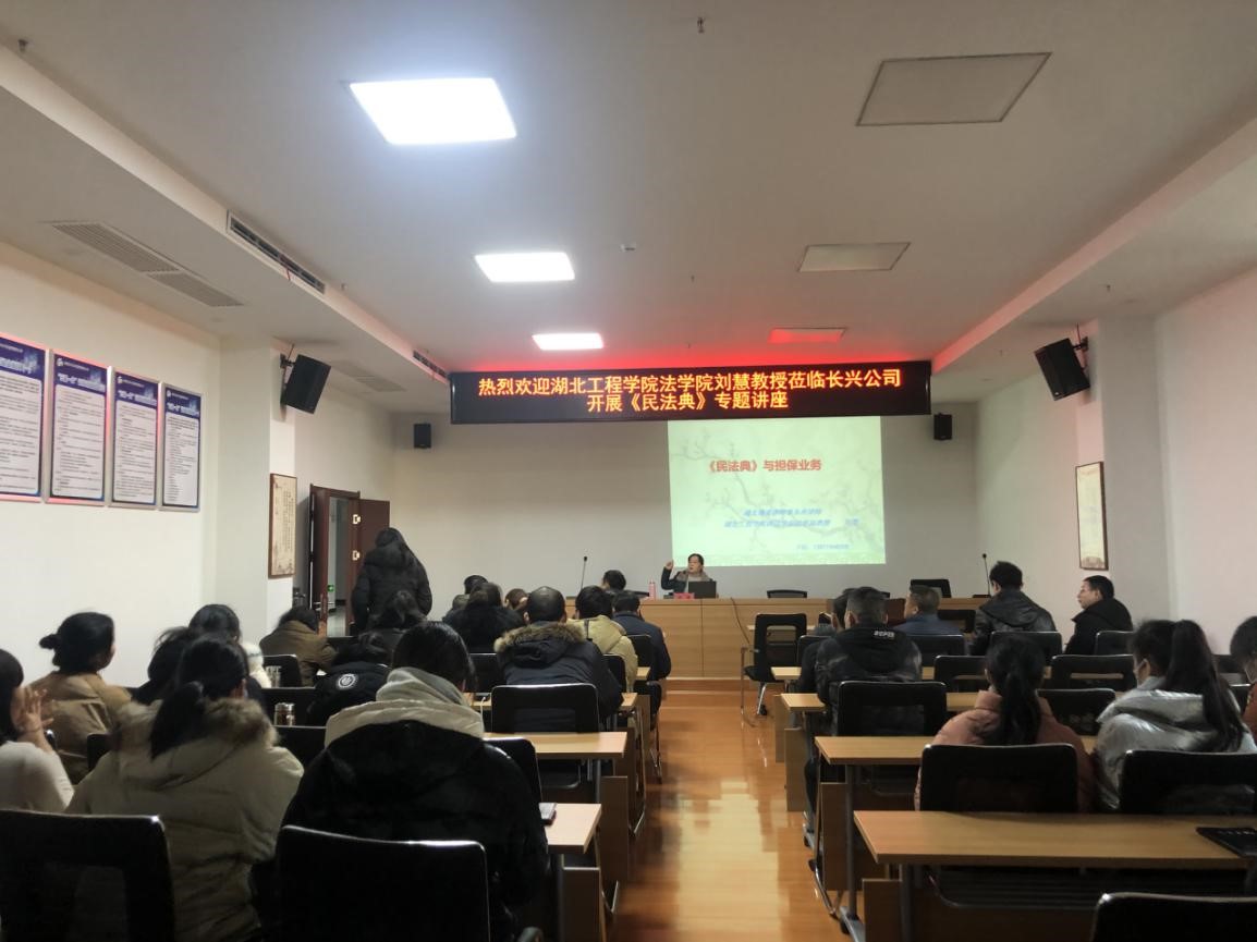 2020年12月30日下午,長興公司組織開展《民法典》專題學(xué)習(xí)講座。本次活動邀請了湖北工程學(xué)院政法學(xué)院法學(xué)副教授劉慧同志作《民法典》專題講座。公司領(lǐng)導(dǎo)班子成員、中層以上干部、黨員干部職工共40人參加了本次活動。
