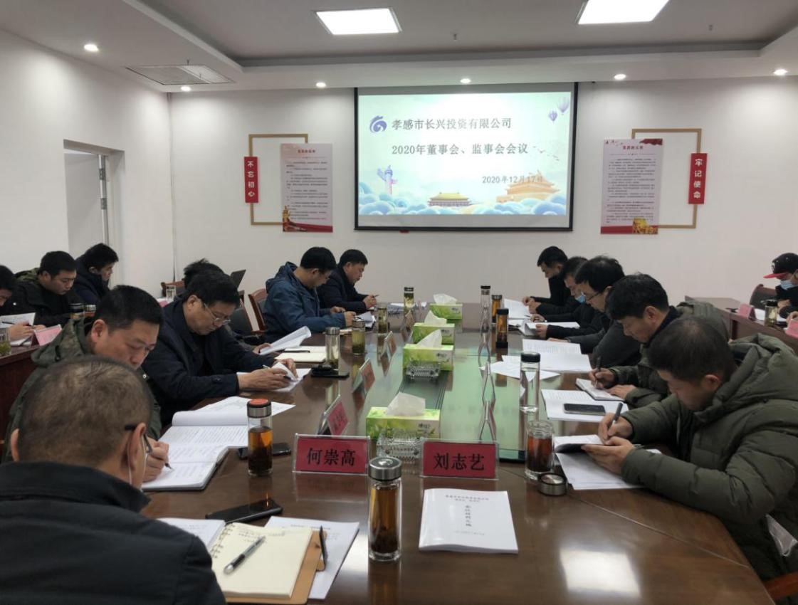 2020年1217日下午,孝感市長興投資有限公司召開了董事會、監(jiān)事會。公司董事長胡格峰主持會議,公司各董事、監(jiān)事及高管共同參加會議,本次會議應(yīng)到董事13人,實到董事11人,應(yīng)到監(jiān)事10人,實到監(jiān)事10人,符合法律程序。